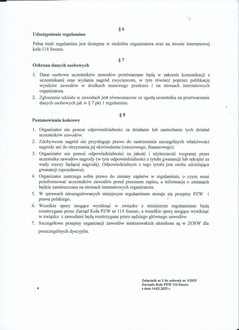 Regulamin zawodów wędkarskich Koła 80 na 2026 rok